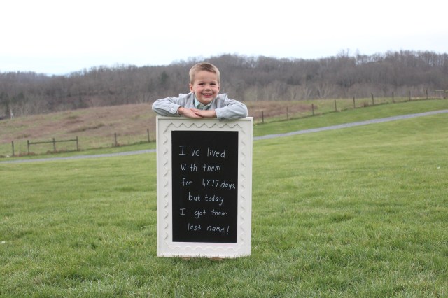 Thank you for being so patient precious boy. Thanks for letting your wall crumble, so mine could, too. You are so so loved and wanted! And today, 1,877 days later, you were adopted! We will love you forever and always, Azariah Jackson!! I am so thankful for our bond that will never be broken!